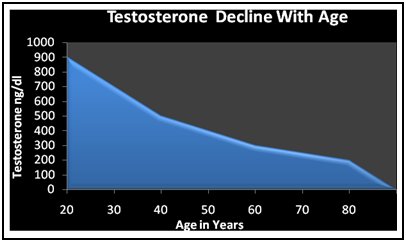 Why is Testosterone So Important Anyway? Testosterone is the principle male sex hormone. On average, an adult male body produces roughly ten times more testosterone than an adult human female body. Testosterone is crucial for your health and well-being. Testosterone plays a major part in maintaining your reproductive tissues (such as your prostate and testes), stimulating sperm production, and supporting healthy sexual function. But it's not just about healthy sex. Testosterone also plays a part in maintaining bone mass, and increasing muscle mass and strength. Plus as you age, note what happens on the chart: ![]() Consequences of reduced testosterone:
